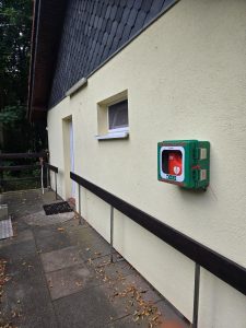 Wir haben einen Defi. Ihr findet diesen hinten am Mittelhaus!