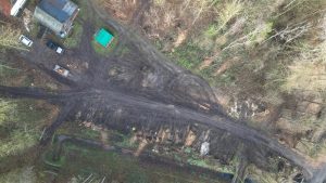 Der Graben ist hergerichtet, der Parkplatz zur Aufnahme der Kläranlage ertüchtigt. Was im Rahmen des Arbeitsdienstes im November begonnen wurde, wurde in den letzten vierzehn Tagen mit Unterstützung zweier Lohnbetriebe fertiggestellt.
